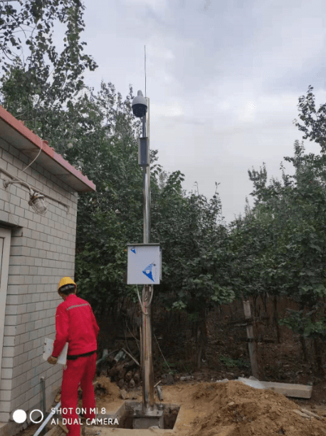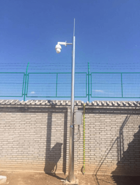 中國石油場站,壓氣站304不銹鋼監(jiān)控桿施工現(xiàn)場,監(jiān)控桿高度4.5米,材質(zhì)為純304不銹鋼,壁厚4mm。